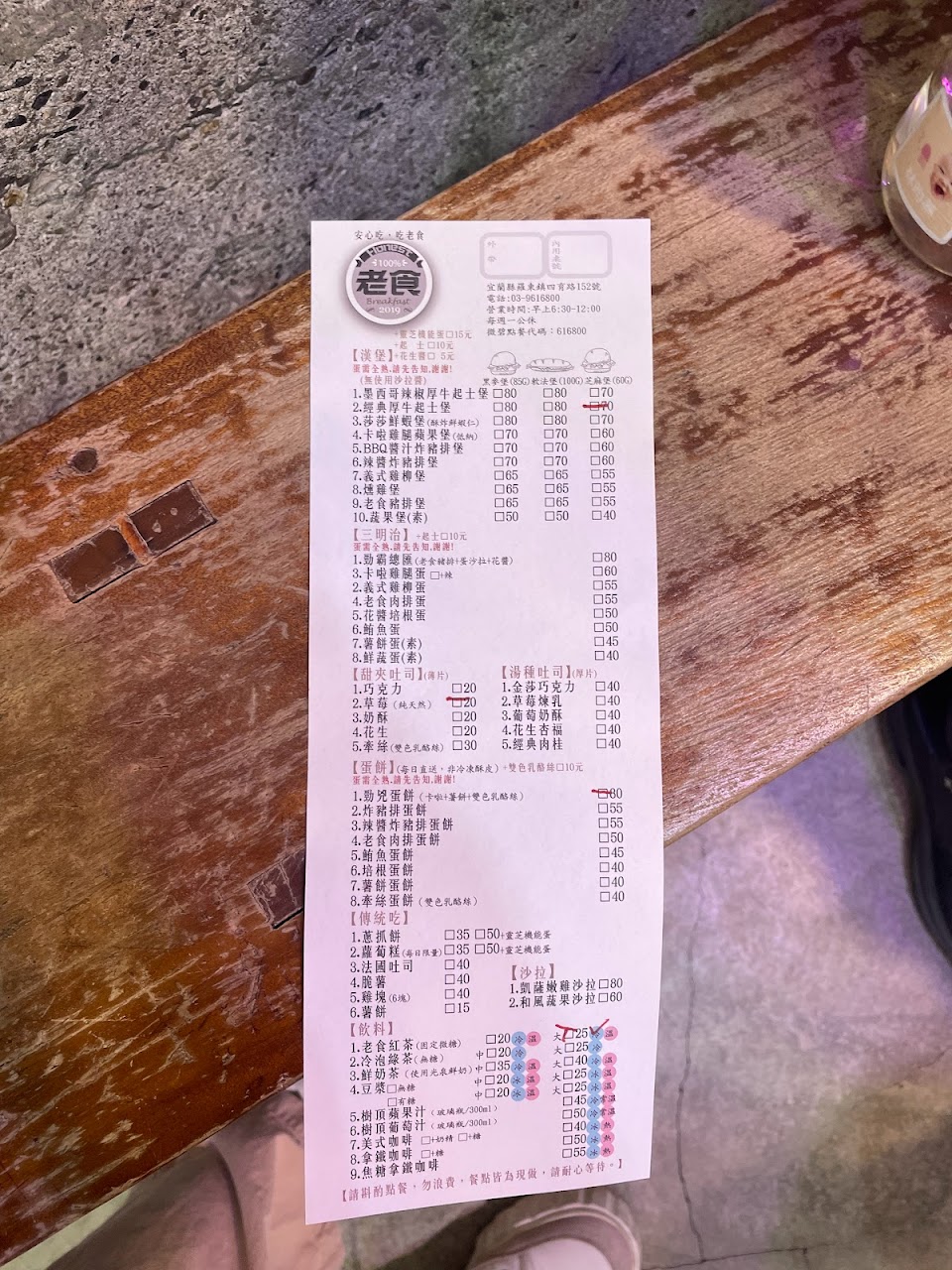 個人認為是目前羅東CP值最高的早餐店,不是大部分早餐店的重組肉,是貨真價實的真豬肉排,搭配半熟荷包蛋做成的肉排蛋三明治,營養滿分又美味,50元一份吃完就很飽了。