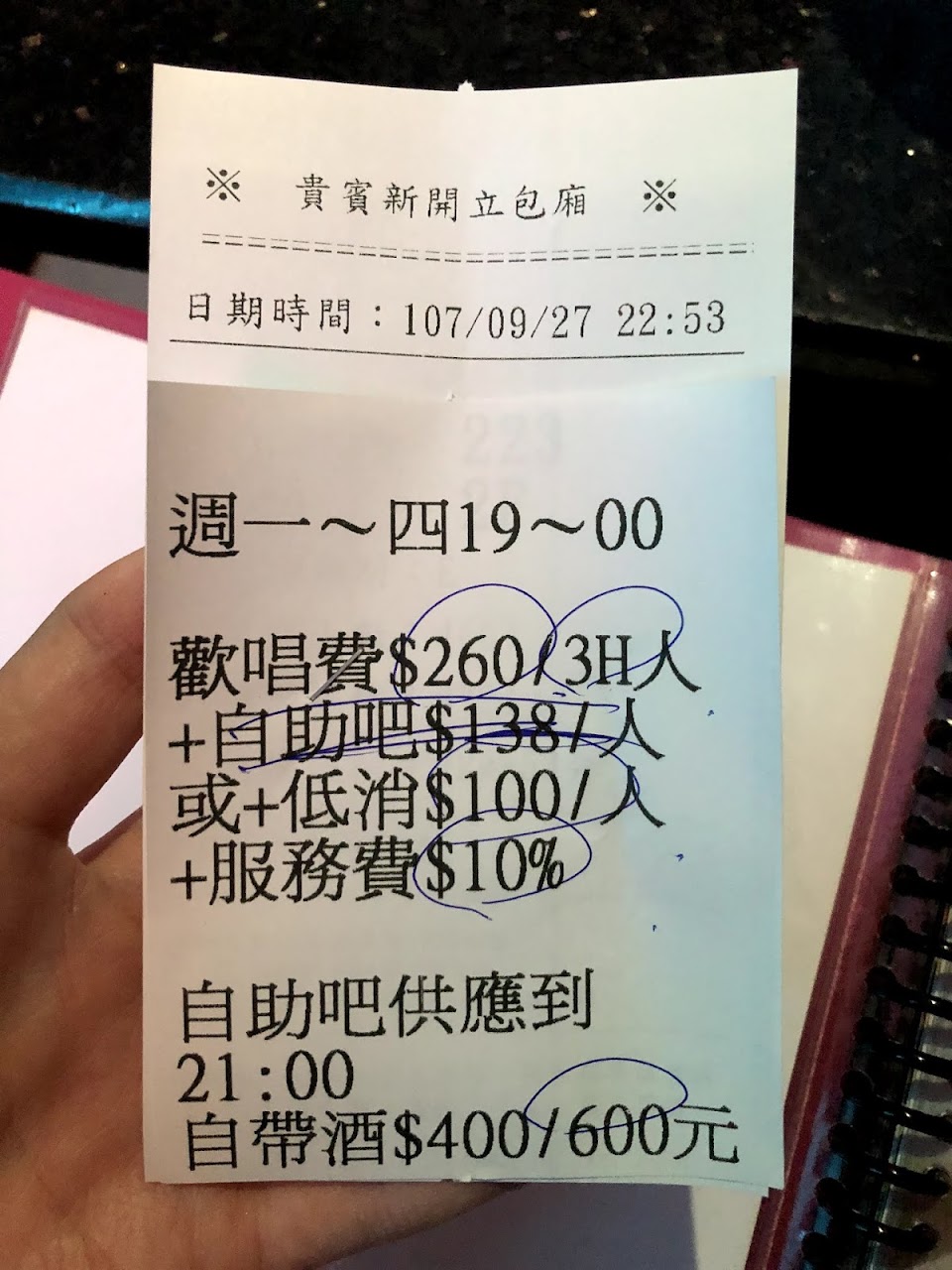 不管你吃不吃,都得付歡樂吧費用。慘的是,宜蘭唱歌选擇不多..