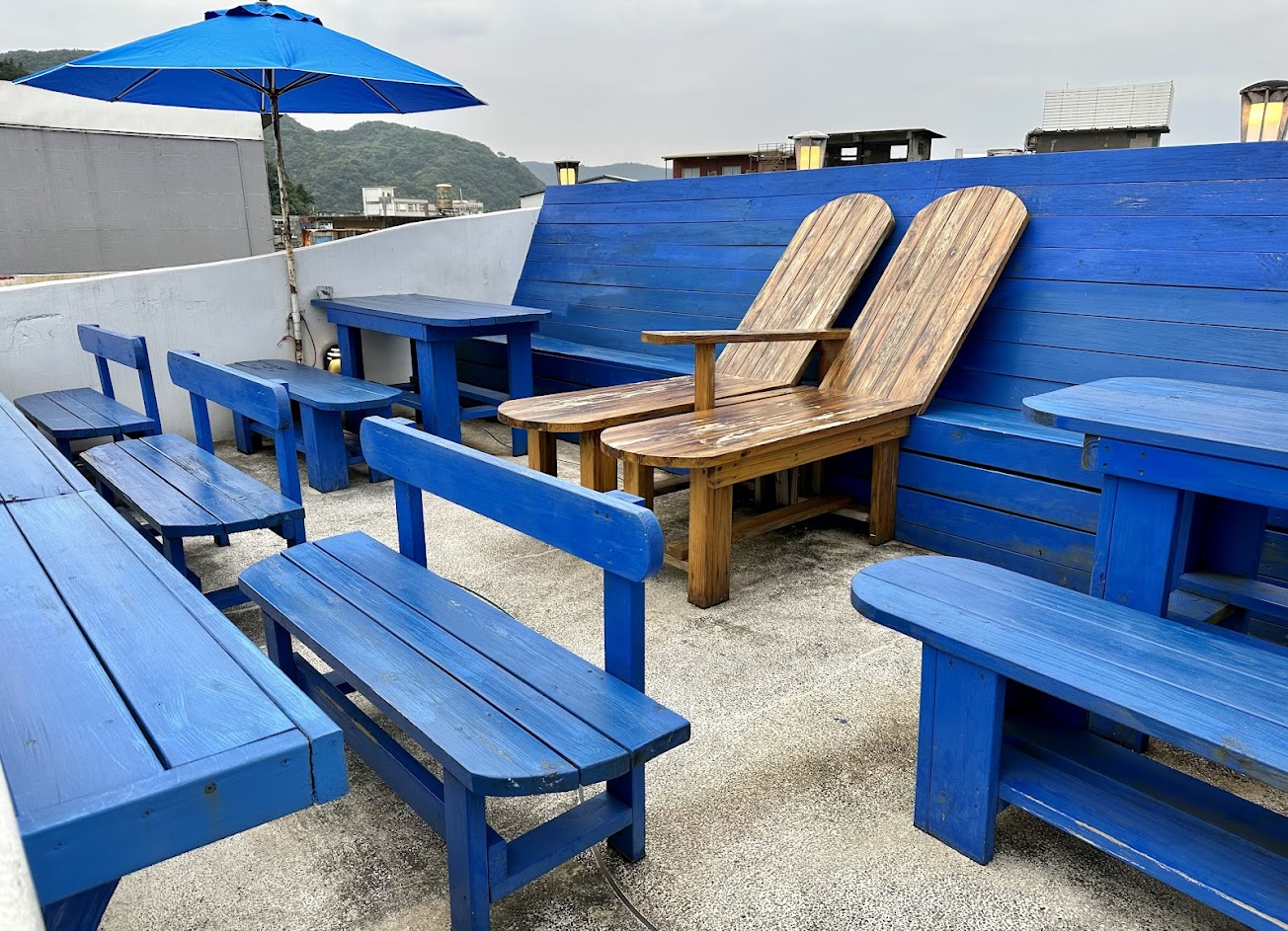 超推這間的(海景咖啡廳)喔,藍白色調的建築,室內,室外都可以坐,菜單有飲品,咖啡,聖代,意大利麵,披薩,鬆餅類,飲料還不錯喝,室外超美的,喝完咖啡可以走出去看看海邊,風景超美超推的,??????個人很喜歡,已經去2次了喔