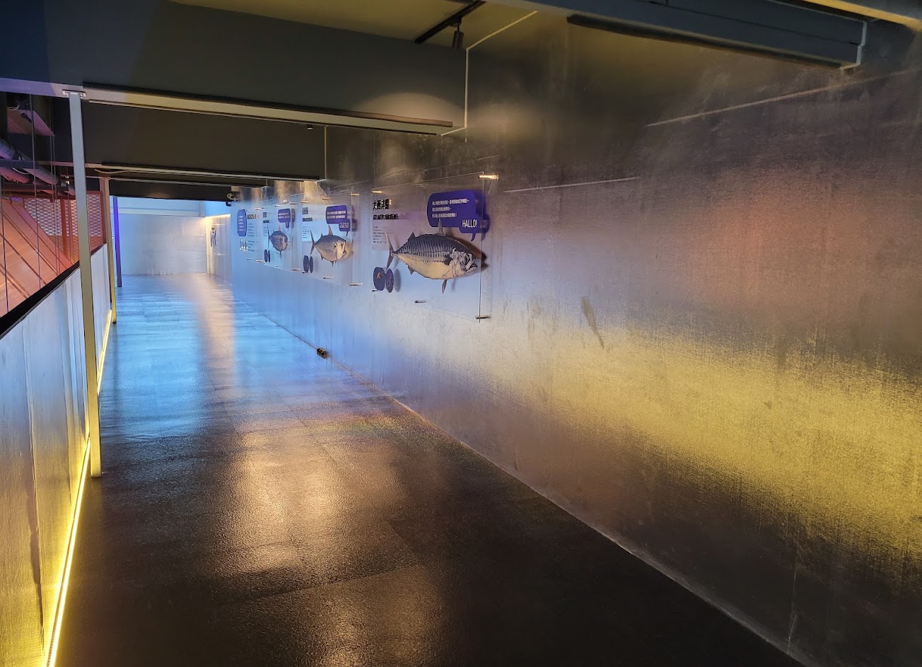 沿著參觀路線可以從漁業的捕撈技術、物流冷鏈、包裝、加工等等一路看過去就會到達餐廳和賣場