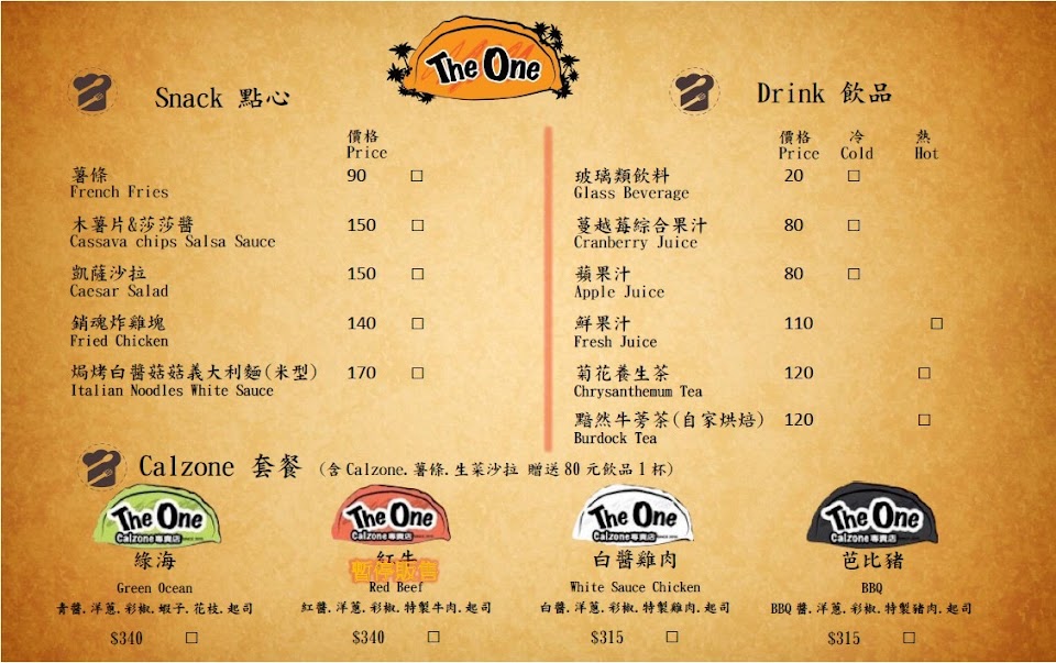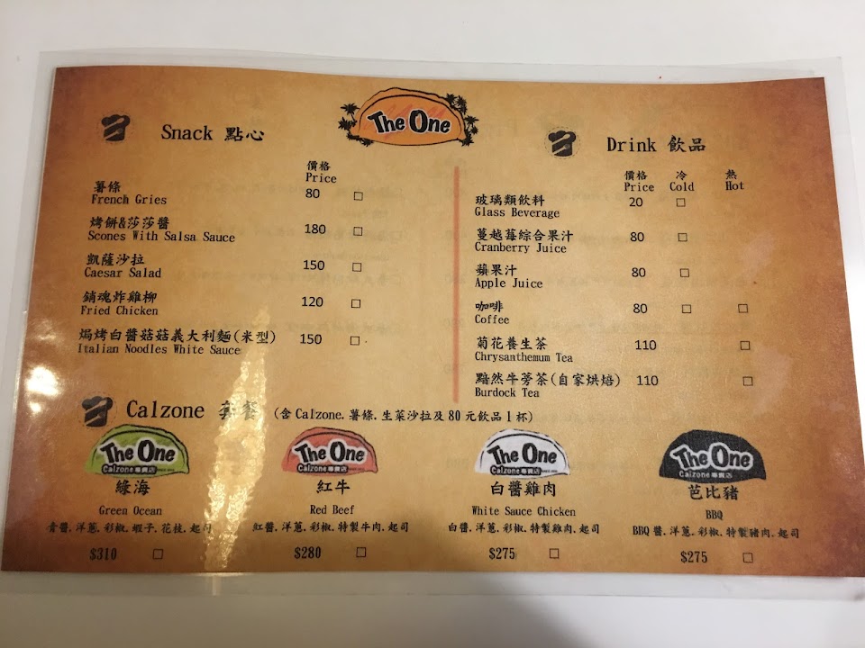 2024最新在地推薦餐廳的菜單_The One-Calzone/Pizza專賣店的菜單、圖片