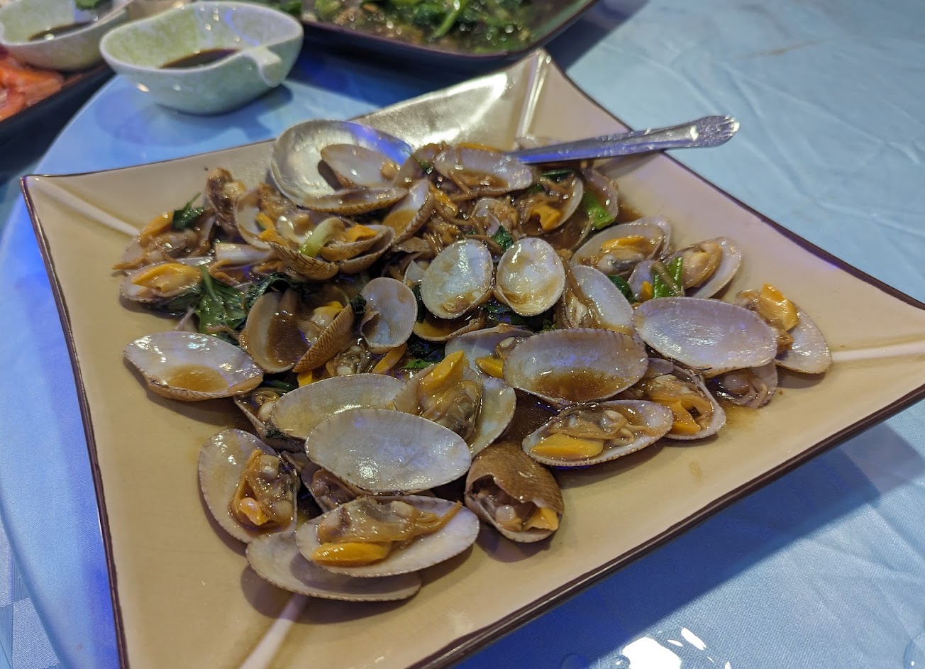 清蒸魚, 炒海瓜子, 霸王蛤蜊湯