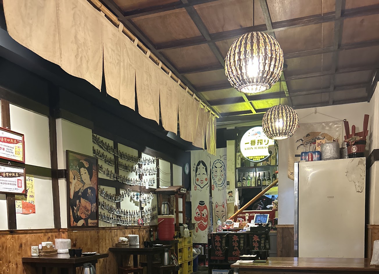 日式居酒屋的裝潢,座位不多適合2-3人小酌吃宵夜 ,餐點平價口味重 搭配生啤剛剛好,平日晚餐時段到訪 候位約15分鐘,但當日用餐的現場音樂感覺有點不搭? 其餘都不錯