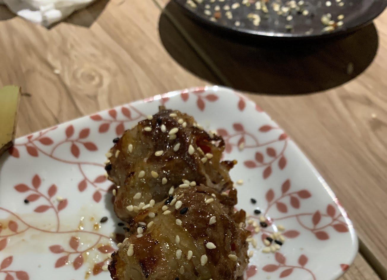 番茄牛肉捲, 明太子雞肉串, 孜然羊肉串