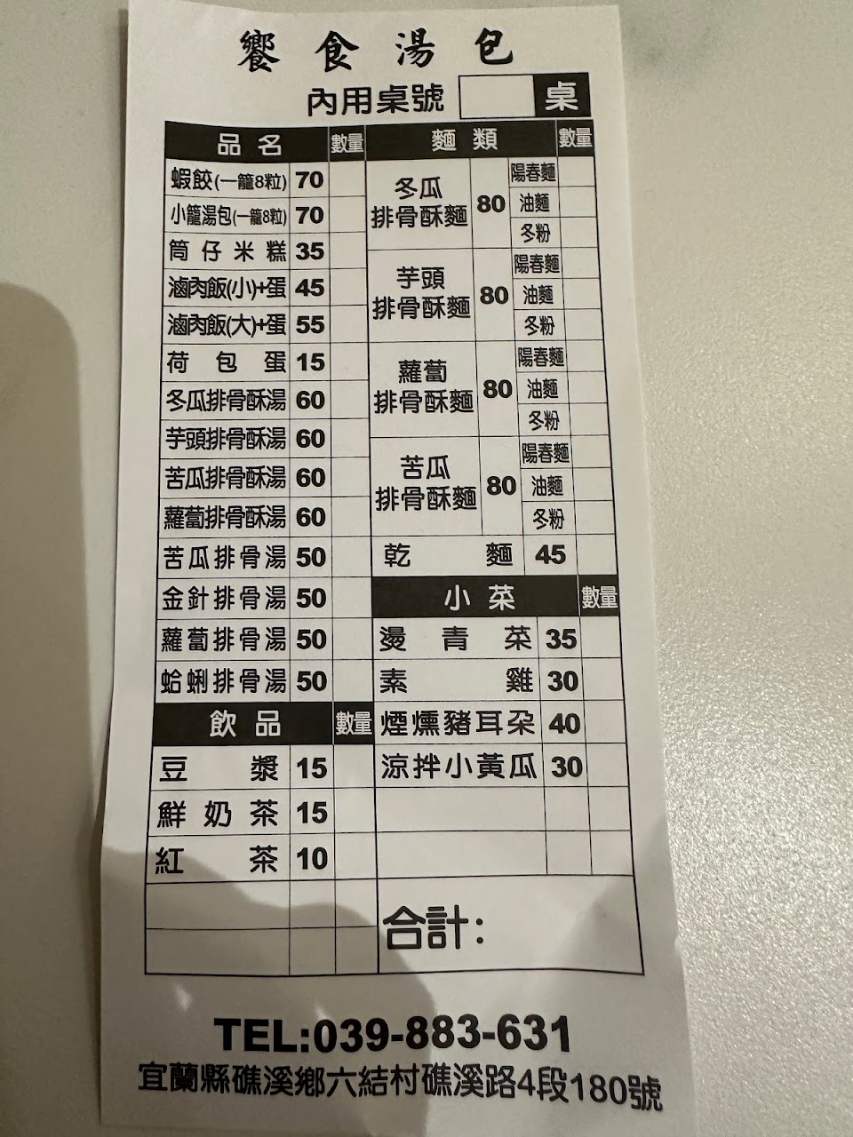 到礁溪來旅遊,從熊貓叫了這家店家,商品都好吃喔!點了小籠包,蝦餃,排骨湯麵,滷肉飯,東西都在水準之上,老婆還說下次到礁溪會在想吃排骨湯麵,價位也很合理,比新竹的!竹x排骨酥麵呢所以一定要留言推薦一下此店家,如果不想在其他地方排隊,直接熊貓點餐送到飯店用餐很方便喔!