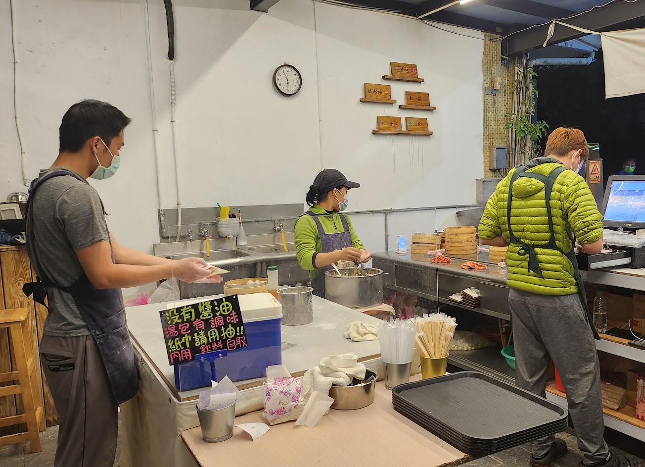 不知道是不是剛開門比較忙的關係,點餐後才看到年輕師傅桿麵皮、包內餡最後放上蒸籠開始烹煮(很適合貼限時動態)。點餐到拿到餐點大約10分鐘,不算太久。