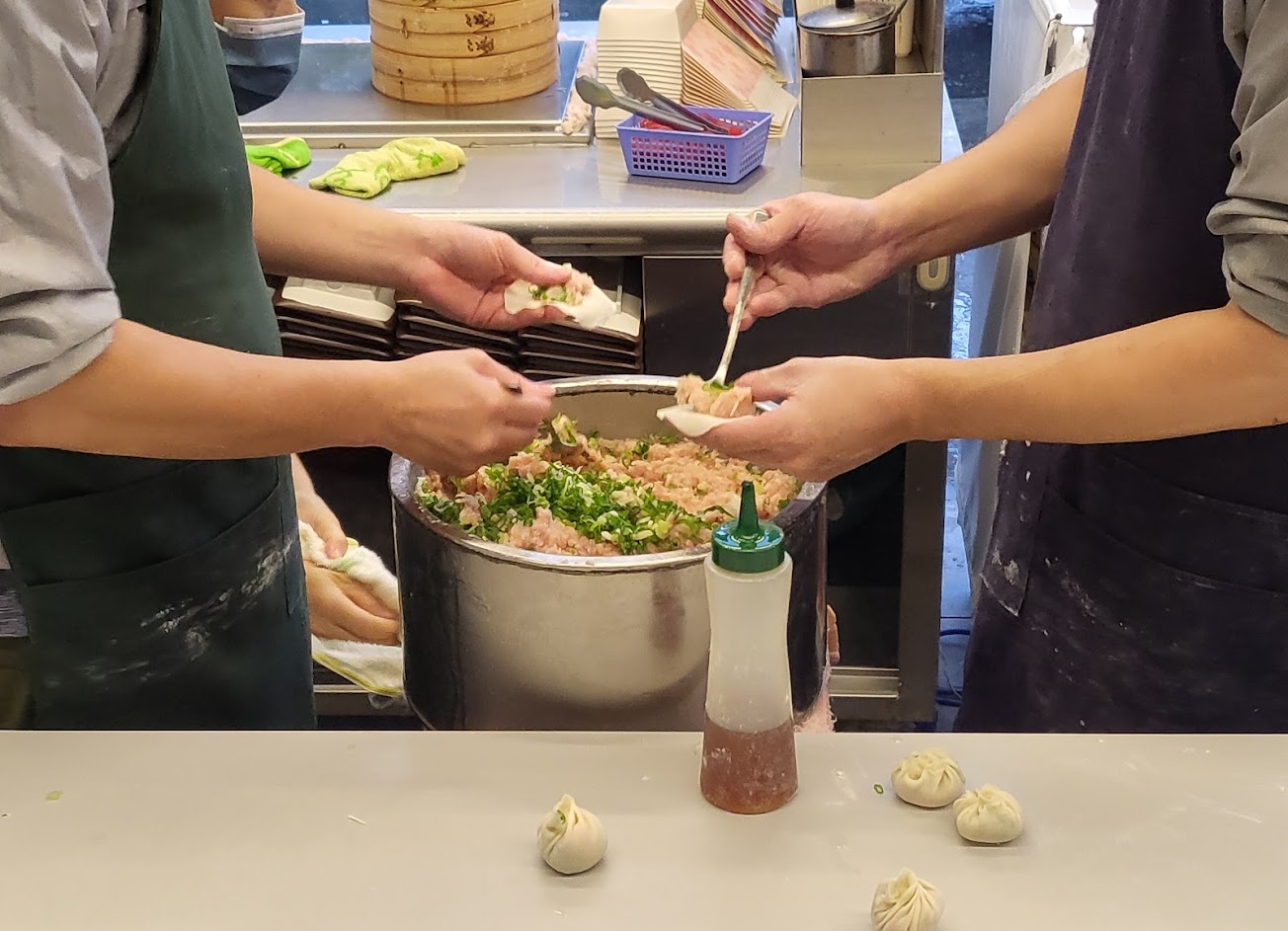 店內員工持續包著湯包。