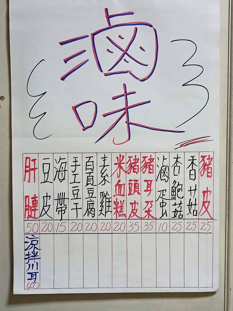 店內乾淨整齊,小菜滷味平價美味!豆乾、海帶、素雞、杏鮑菇都好吃,肝鏈和粉腸有時賣完就沒有,愛吃辣的人小菜一定要沾老闆自製辣椒超香又不會鹹!