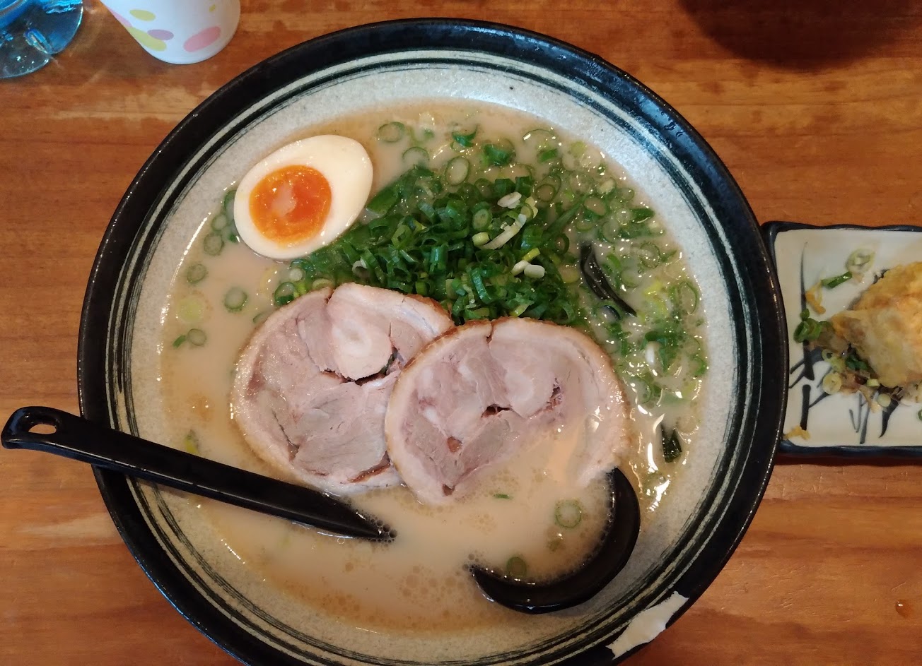 超濃豚骨拉麵湯頭還不錯,點了一份烤鰻魚肝也好吃;只是位子少客滿,需要稍微等候。