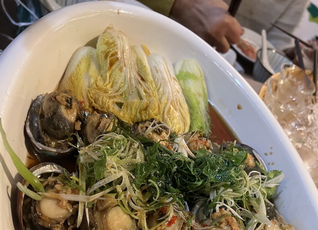 有很多的鮑魚, 蝦, 透抽, 蛤蠣等等