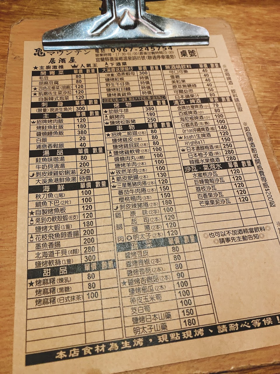 番茄牛、ㄗ然羊、鹽蔥雞(大推)、明太子雞、超大蛤湯(大推)、雞翅、烤山藥跟玉米筍(大推)、紅目魚(大推)、秋刀、雞軟骨 供參考