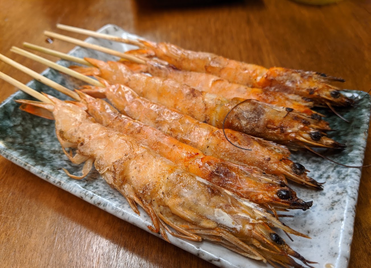 點了鹽味烤雞肉串、扇貝…,非常好吃