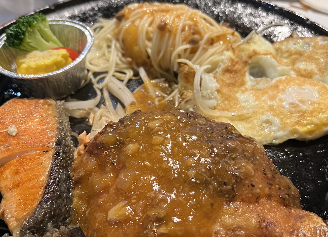 海陸雙拼份量夠,紅茶好喝,鐵板麵的細麵非常合胃口,玉米蔬菜和醬料,特別用容器盛裝放在鐵板上保溫,可以感覺店家的用心~ 會想再造訪的牛排店?