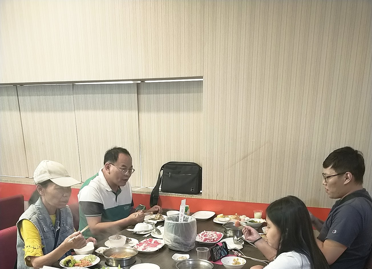 帶著女兒去吃火鍋,有個男店員很親切關心我車貨的腳!!火鍋食材蠻多的