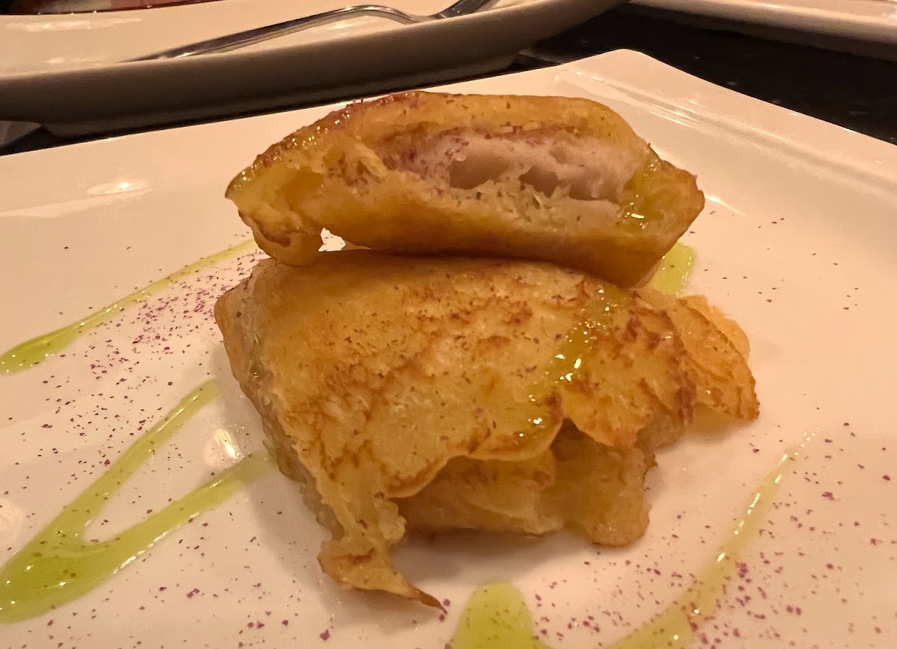 林林種種前前後後,上了好多道菜,看得出來餐廳跟師傅努力使用宜蘭礁溪的特產入菜,例如金桔,紅喉等。剛開始我覺得師傅上菜很快,沒想到這樣吃下來也吃了一個半小時,松露燉飯搭干貝非常好吃,用的是宜蘭的越光米,牛小排捲紫蘇與剝皮辣椒,也是搭配了宜蘭礁溪特產之一。親友說炒飯非常好吃不可錯過,我是覺得他飯後的焦糖蘋果巴斯克蛋糕很好吃。