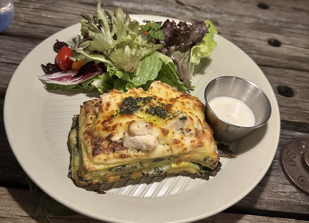 濃濃的番茄味還有上層的焗烤起司,旁邊還有生菜沙拉可以解膩,這道推推?