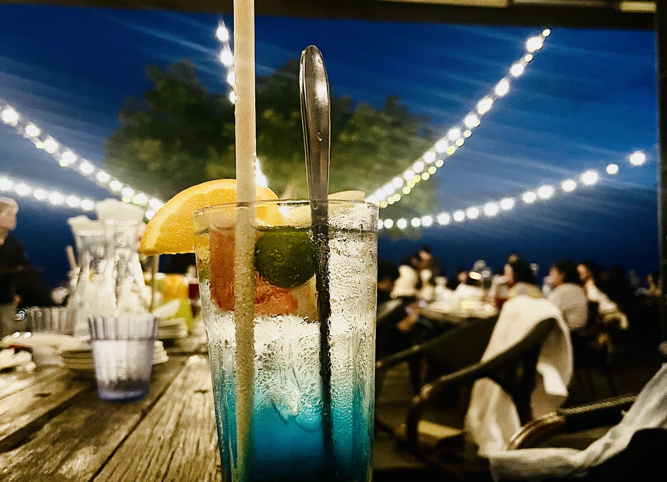 坐落於山頂的餐廳,在坐擁遼闊景致的露台上販售著披薩,並有掛滿童話般燈飾的樹木。