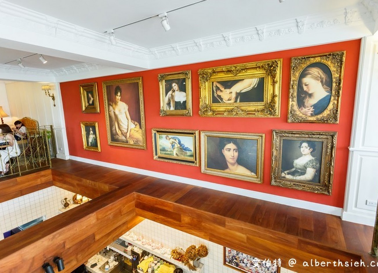 很有歐洲風格的餐廳,二樓有一整面掛著類似文藝復興畫的牆,三樓是華麗的宮廷風用餐區,戶外庭園佈置的很愜意,很像歐洲常見的屋頂上的酒吧。除了裝潢很美,咖啡與甜點也都很用心。