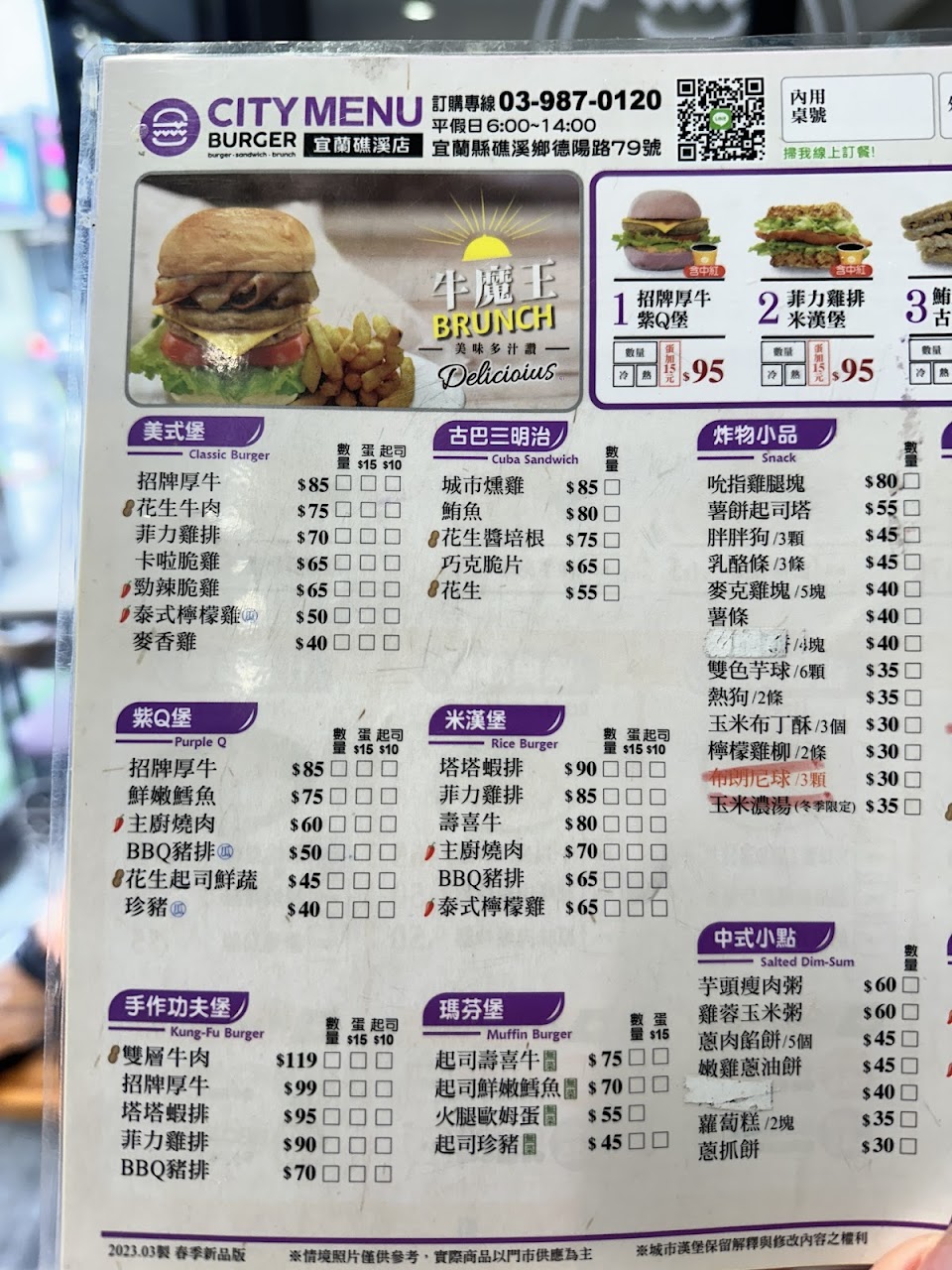 2024最新在地推薦餐廳的菜單_城市漢堡 早餐 早午餐 City Burger礁溪店的菜單、圖片