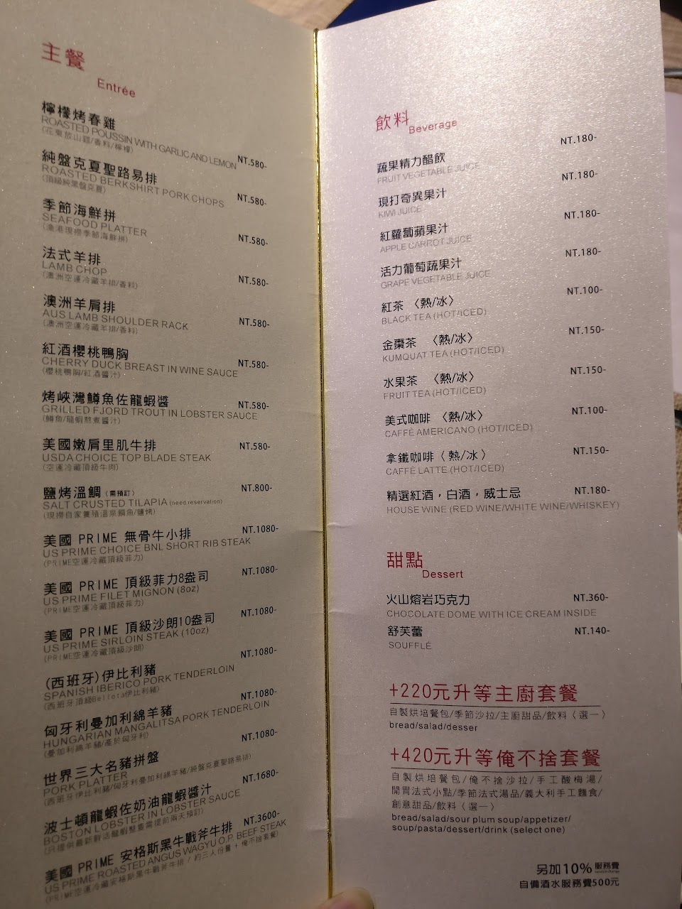 從前菜到甜點 唯二能選的是飲料跟主餐