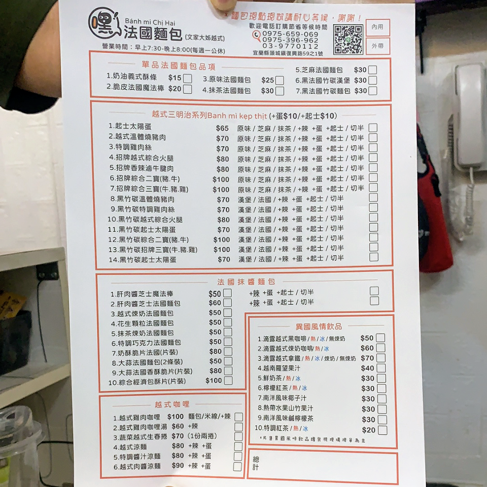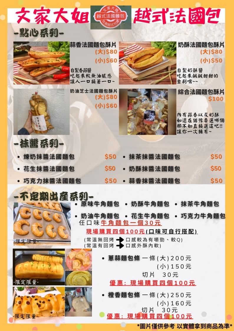 2024最新在地推薦餐廳的菜單_文家大姐越式法國麵包(頭城店)的菜單、圖片