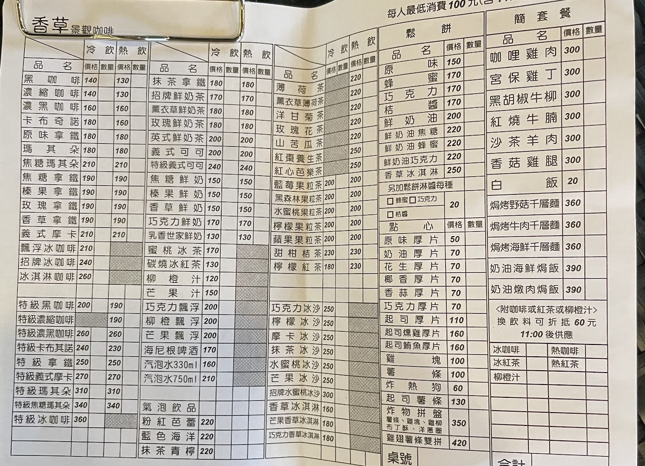 一進到咖啡廳,我先問可否看看菜單(還沒有決定要不要入內用餐),同時友人詢問店員廁所在哪裡?店員就說在外面走到底(也沒告知若不消費要收$50)