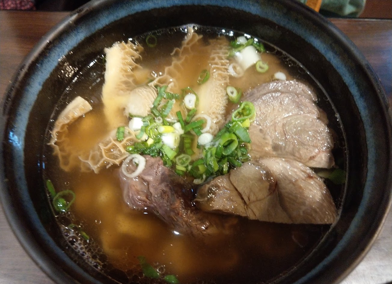 剛喝湯覺得還好,加酸菜和香油配乾辣椒就還不錯,老闆人好,雖然說不加蔥還是加了一大堆,但會願意幫忙撈掉,服務品質好,值得推薦,點了半筋半肉,有幾塊好吃有幾塊不好吃,品質似乎不太穩,覺得可能客人多,忙不過來&第二次吃,點單上註明不加蔥,特別跟老闆說好確認不加蔥,上菜時,滿滿的蔥,差點想給負分,但服務品質在這地區簡直超好,就不降評了