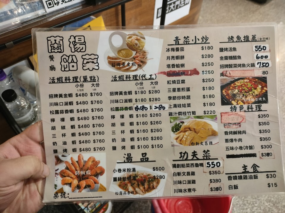 跟對面蘭楊蟹莊是同系列,可以在對面釣蝦之後過來烤蝦。不過要抱著吃快炒的心情來吃比較不會有落差,沒有炒飯跟炒麵,但白飯不用錢可以一直吃,魚肉的調味不是我的菜,高麗菜、空心菜還不錯,筍干也有水準。但盤子跟擺盤就普普通通,如果說要吃氣氛或是慶祝父親節情人節什麼的,可能就不是那麼適合。