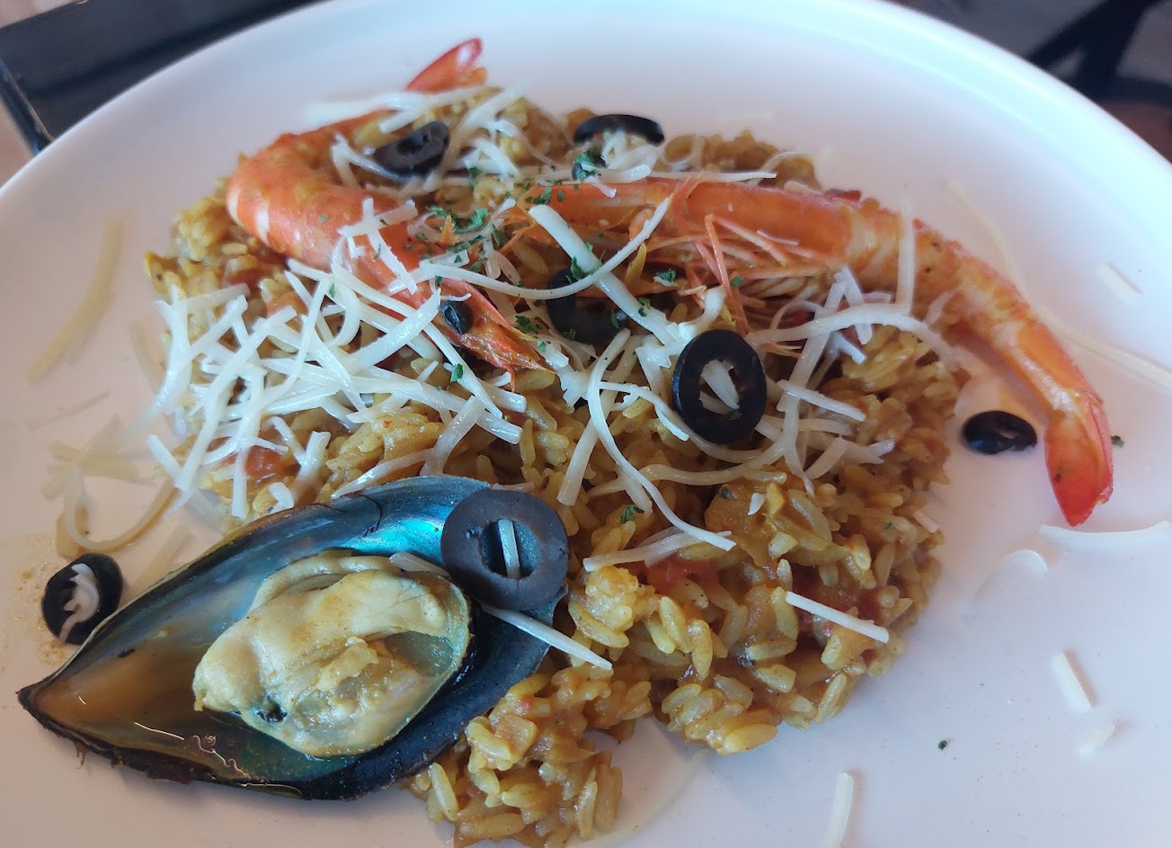 奶油味很香,食材很新鮮干貝跟蝦子?都很好吃、調味也很剛好,麵體的口味是偏硬的義大利麵。