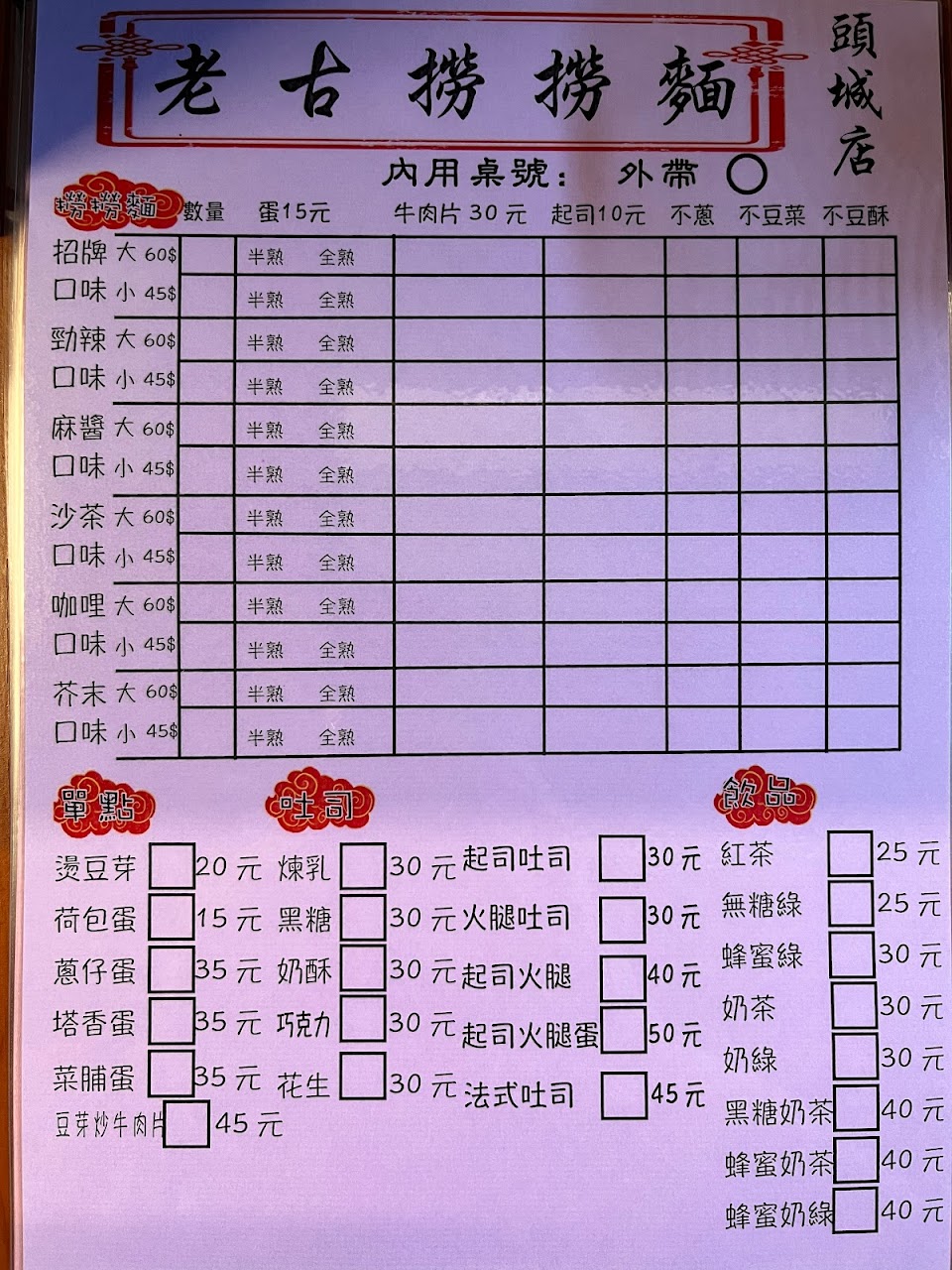 2024最新在地推薦餐廳的菜單_老古撈撈麵-頭城的菜單、圖片