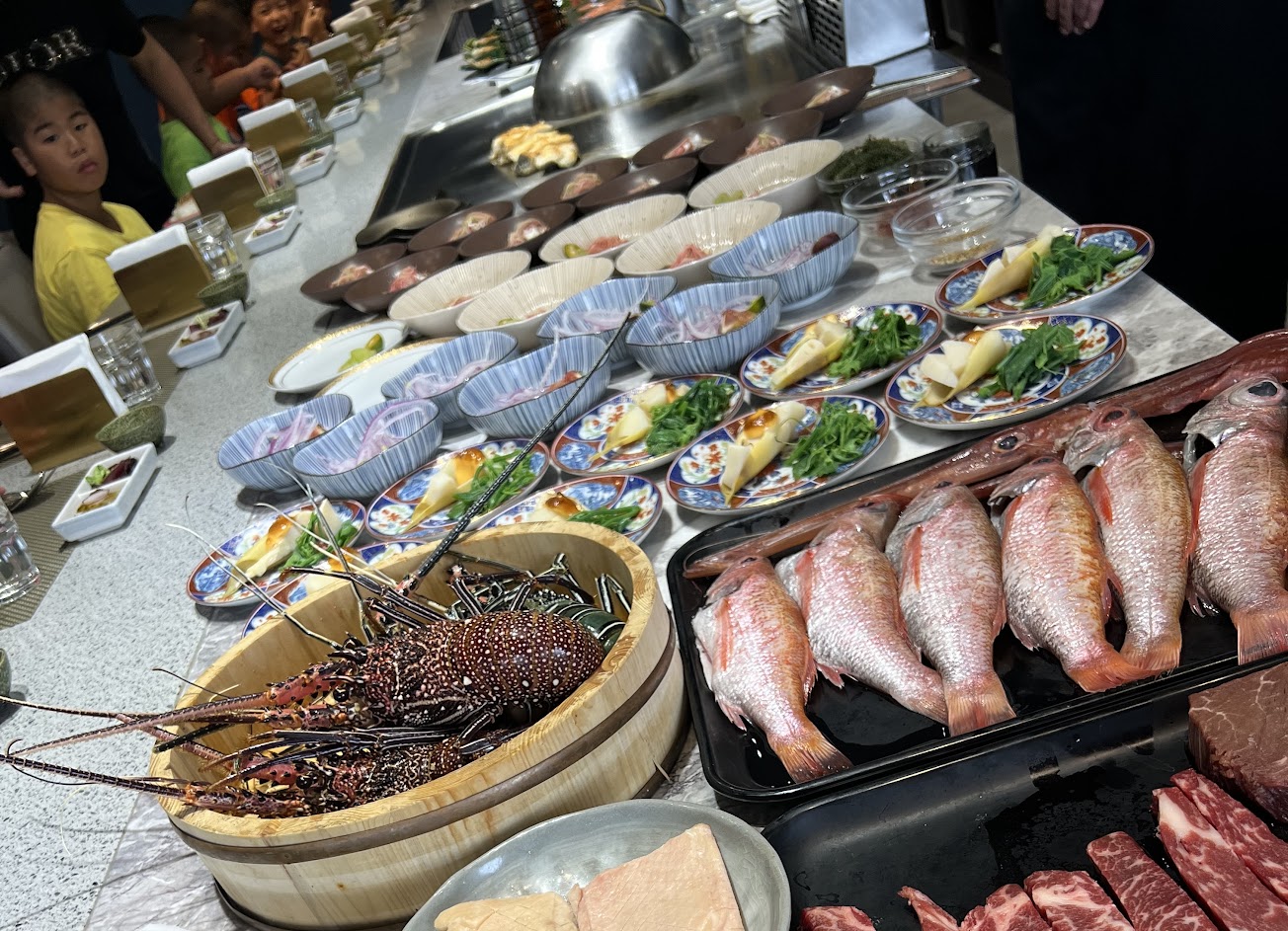 2023年的父親節慶祝選定這家餐廳來慶祝,一進門就看到新鮮活跳跳的龍蝦🦞和鮑魚以及一堆海鮮料理,還沒吃之前就已經餵飽眼福。