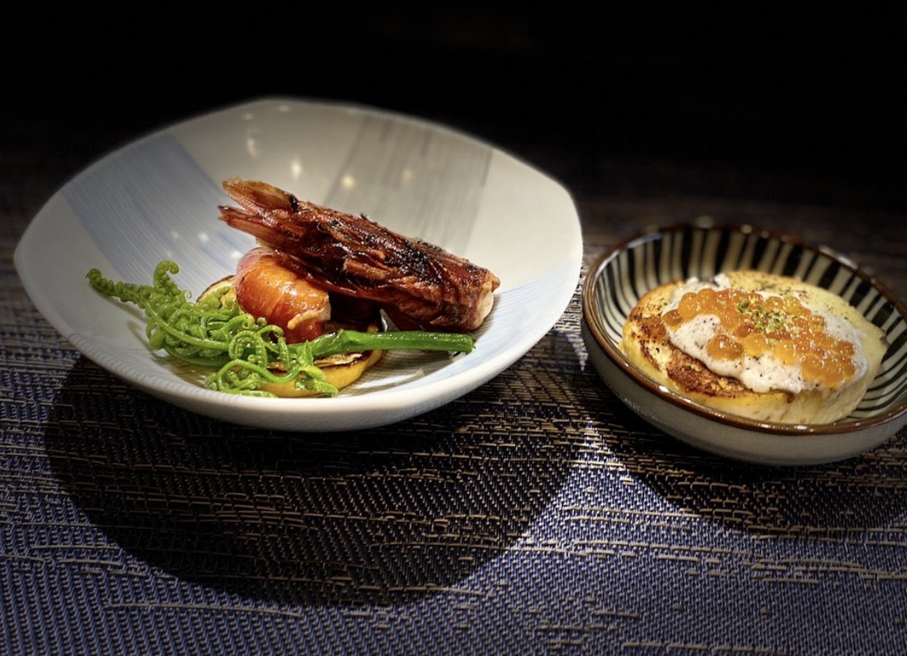 大溪漁港甜蝦、起司茄子、新鮮無花果