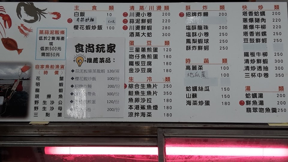 蒜泥鮮蚵, 招牌炸鰻, 綜合生魚片