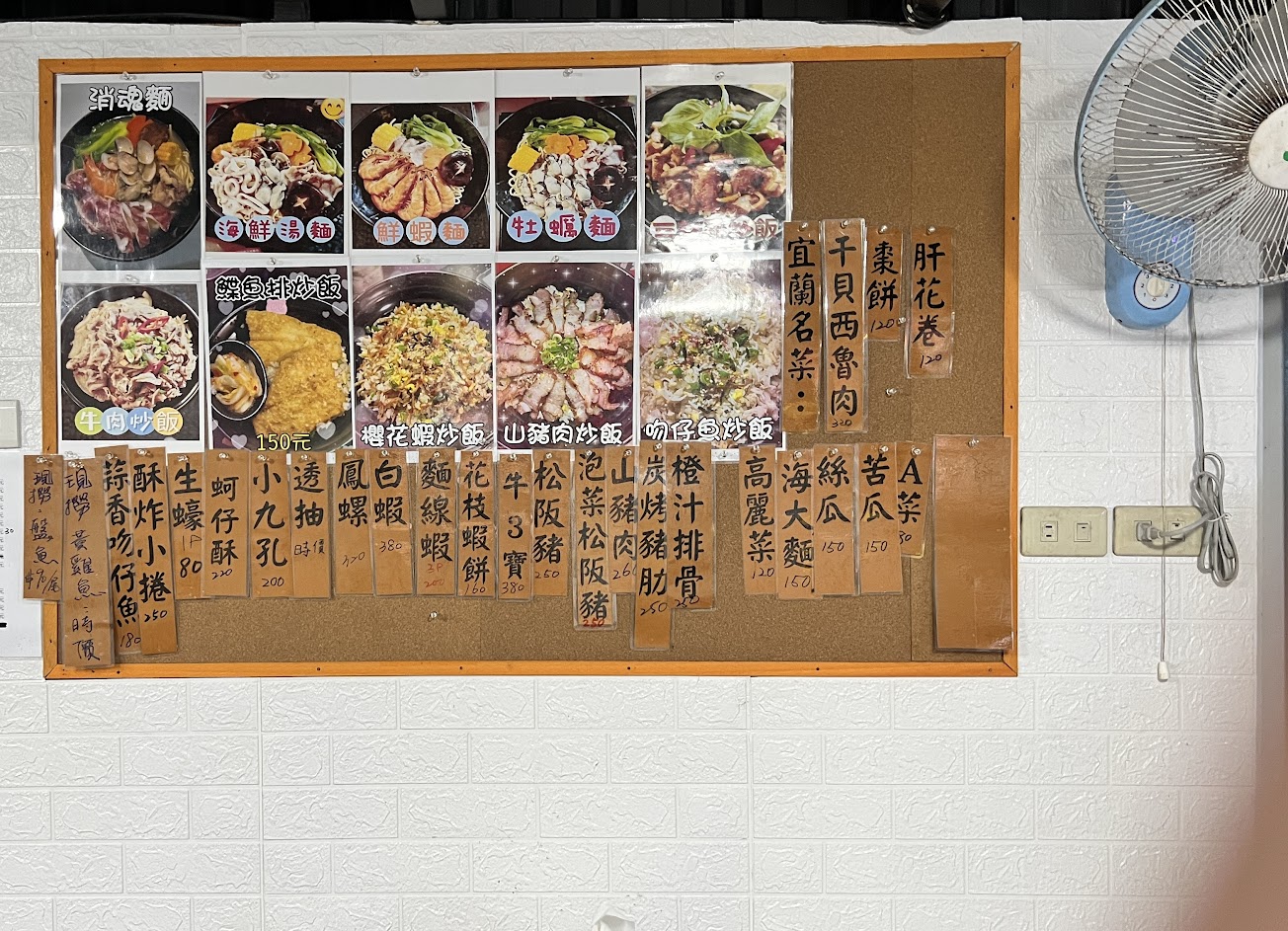 白蝦、煎盤魚4條、燙透抽、炒蛤蠣、燙蚵仔、炒高麗菜、海鮮粥比銷魂麵好吃
