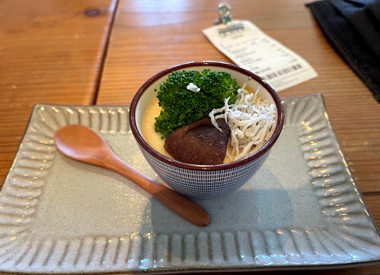 主菜選擇「透抽」,肉厚鮮甜、淡淡焦香,十分美味。小菜、茶碗蒸使用吻仔魚入菜,當季食材最是美味?