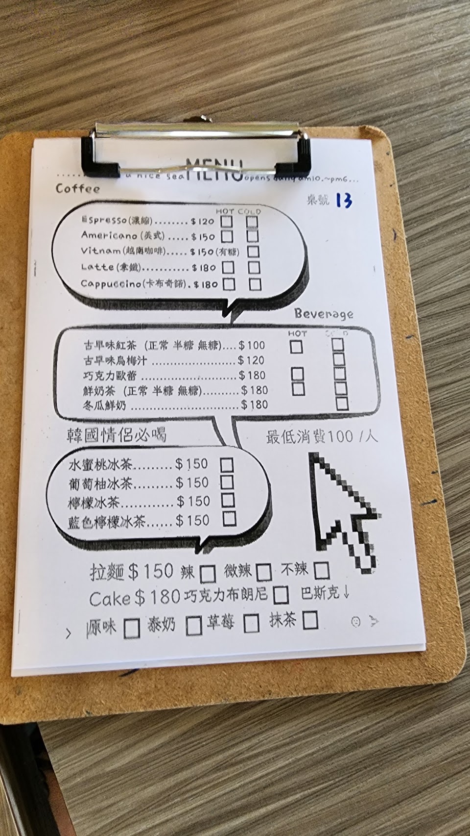 每人低消只要100元,不收服務費,