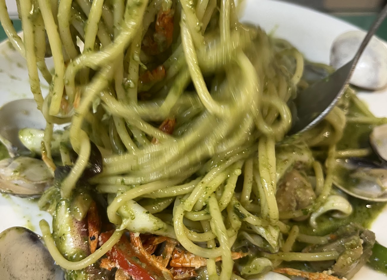 雖然店面很低調,價格又非常平價,但味道真的很不錯,今天吃的青醬很濃郁,海鮮白醬搭配了櫻花蝦也很好吃!