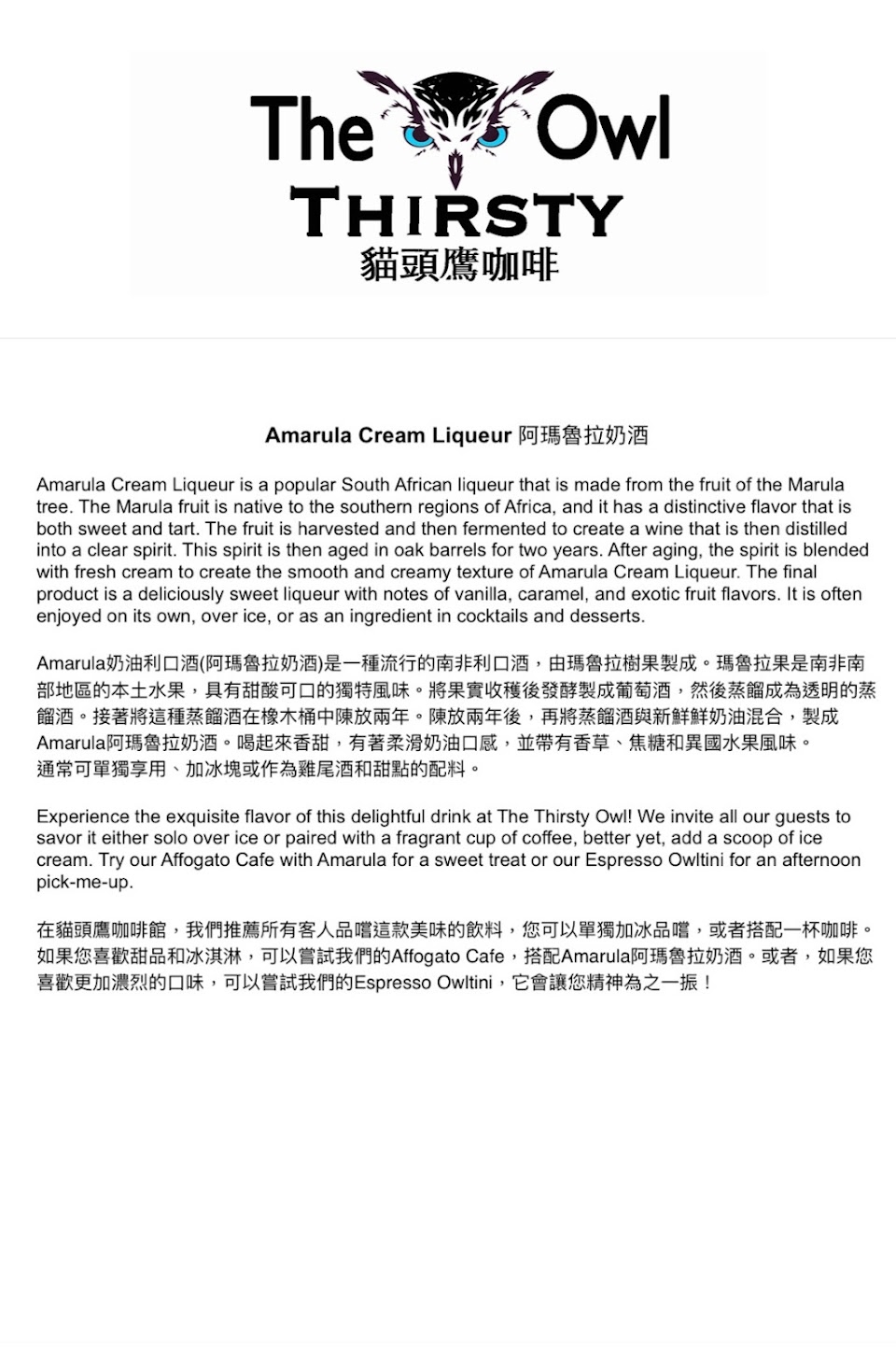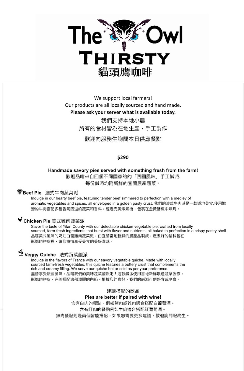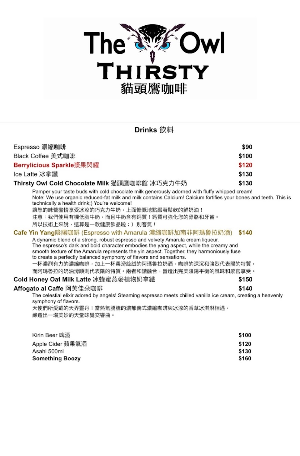 2024最新在地推薦餐廳的菜單_The Thirsty Owl 貓頭鷹咖啡的菜單、圖片