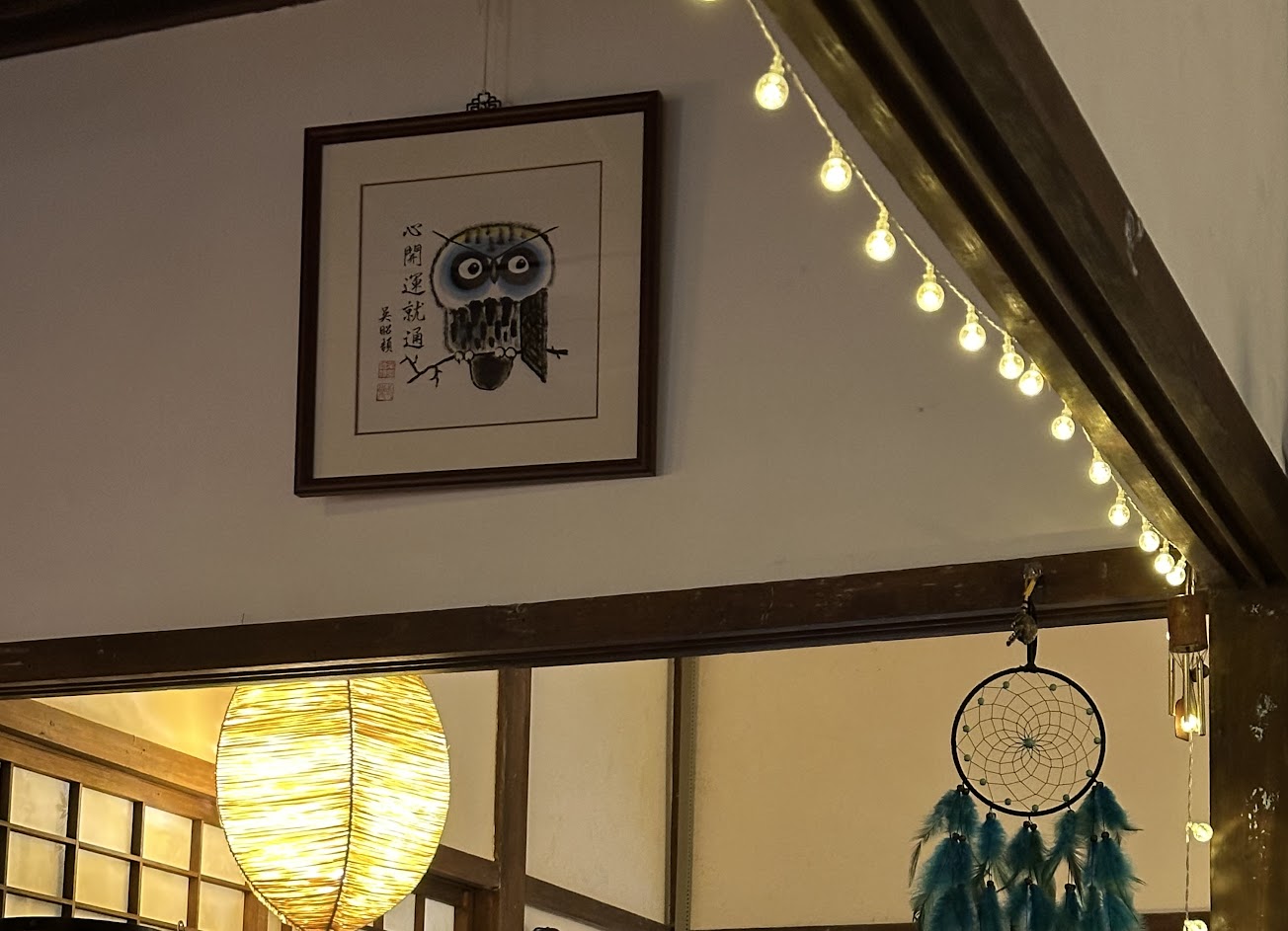 Just a 30 seconds walk from the train station you can walk into Toucheng’s ultimate fusion cafe/pub/lounge… I don’t even know in which category I can put it. Maybe the owl defines it’s own category and that’s mainly because of Anje, who runs this place.