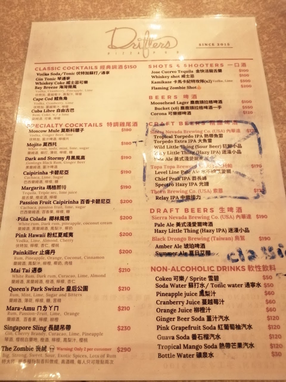 2024最新在地推薦餐廳的菜單_Drifters Pizza Pub 漂流者披薩吧的菜單、圖片