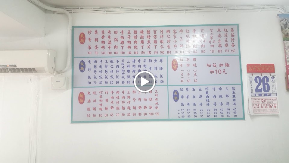 店裡的菜單很有古風,是類似手寫楷體的老派風格,木頭餐櫃也陳舊了,店內陳設可以看得出真的經營很久,但維持的滿乾淨,地板也都不會黏黏的。主要負責外場的那位小姐很親切,但又不會太愛聊天,而且非常會控場。最喜歡這種外場控場超棒的店了,就是有種老店的火力展示感,就算等餐時間會比較久,也讓人覺得安心。
