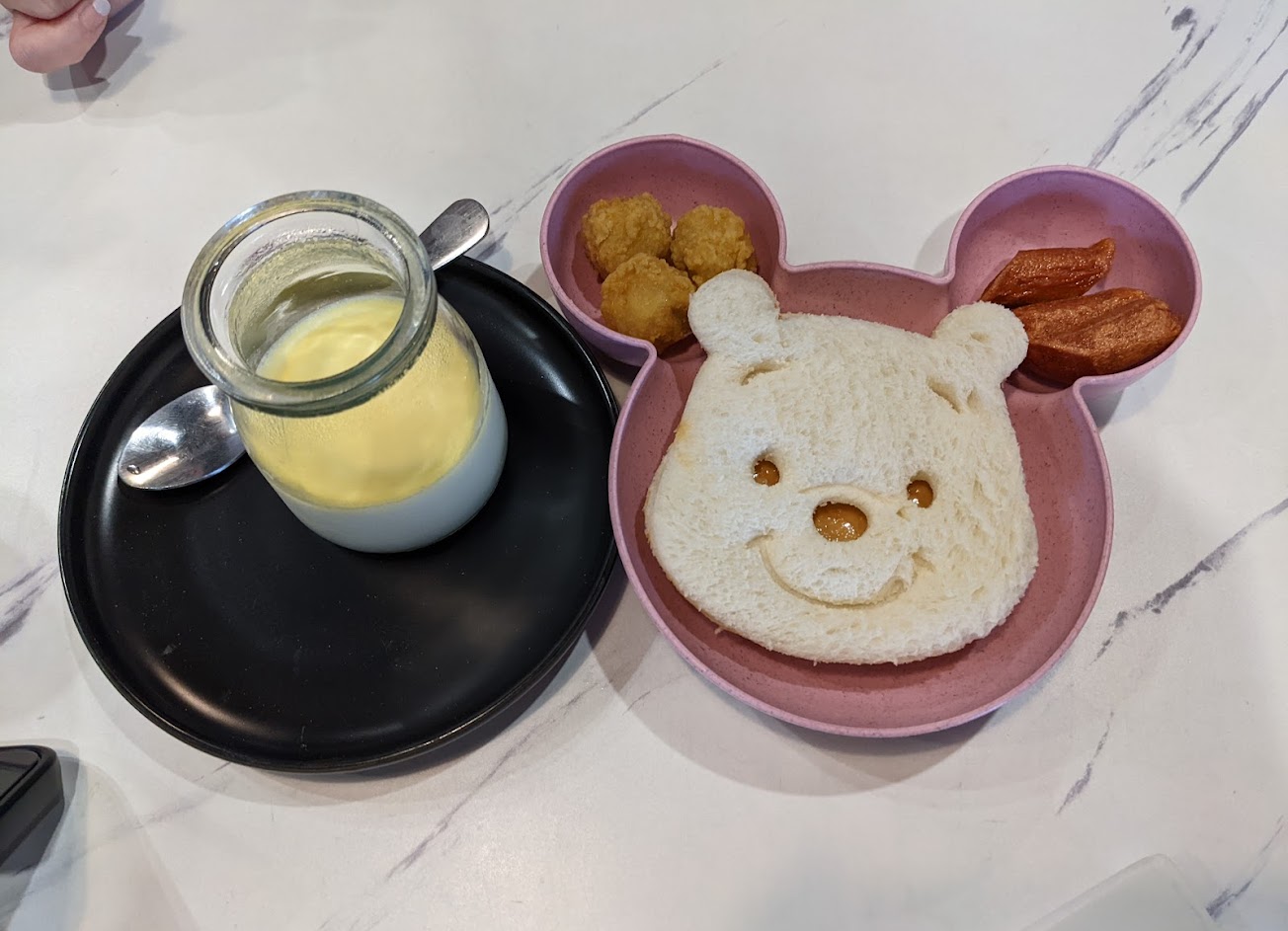 餐具採自助式拿取 餐盤也用得很可愛? 價格不貴餐點也好吃 店內還有孩童玩遊樂區,就算帶小孩一同用餐也不怕小孩無聊而吵鬧