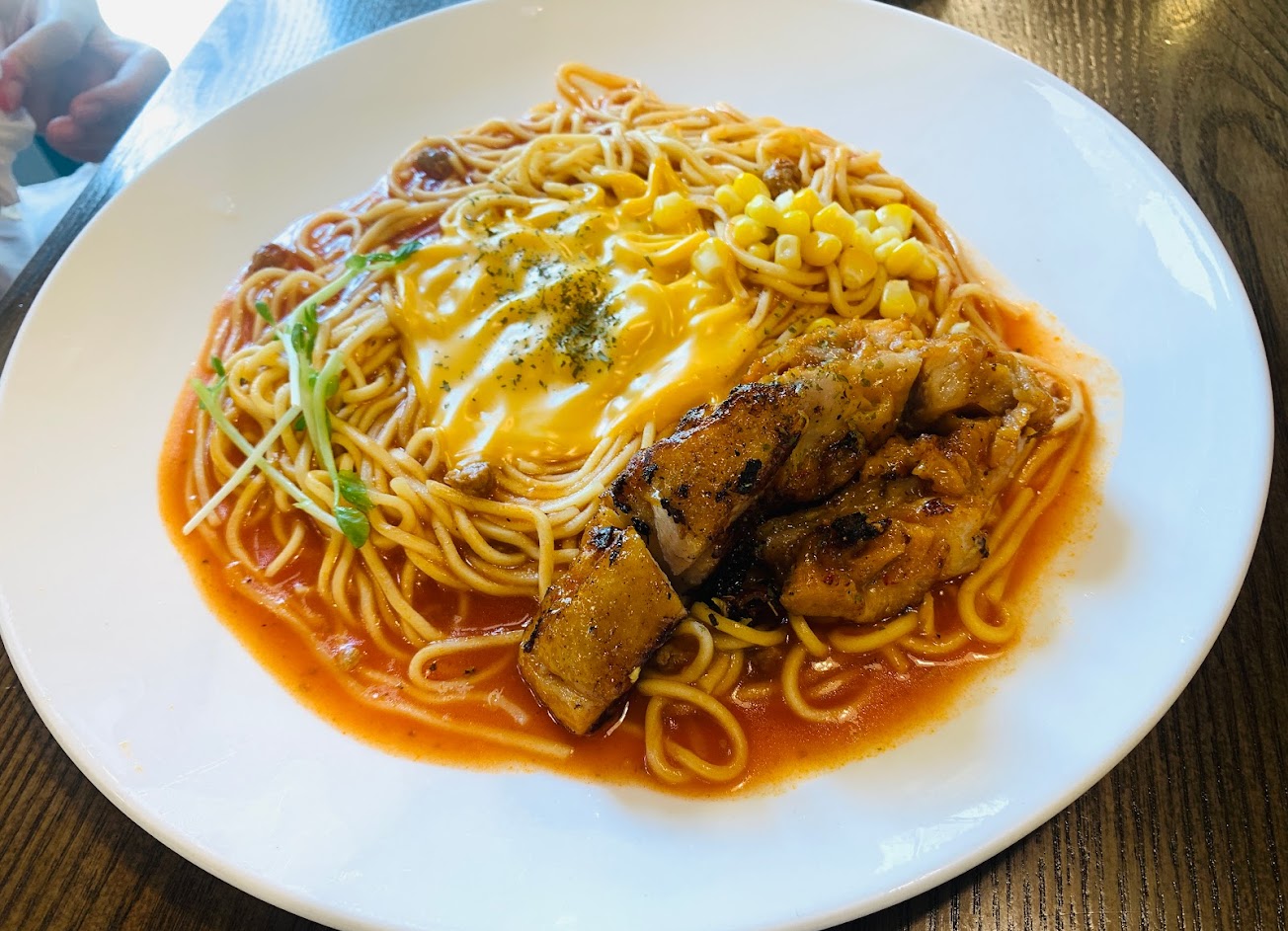 鐵板麵-雞腿肉滿好吃的、很嫩(但有辣味泡麵的味道🤣🤣),麵有點味道不夠,整體來說也是普。