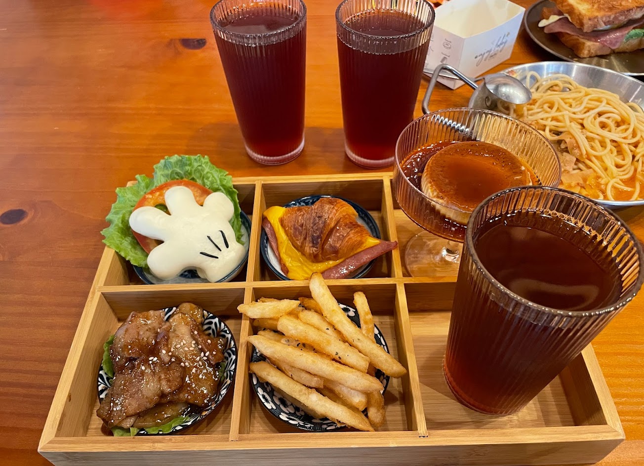 點了鴨賞蛋餅、黑精靈漢堡、韓式泡菜炒泡麵和厚片吐司,食物都很好吃,希望鮮奶茶可以稍微甜一點?