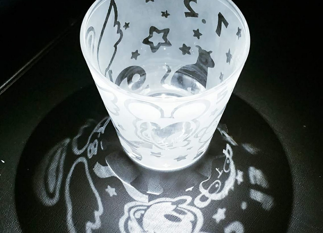 手作噴砂玻璃杯,自己創作圖案,讚!店家還提供拍照的旋轉舞台與燈光,DIY時間很彈性。推薦….