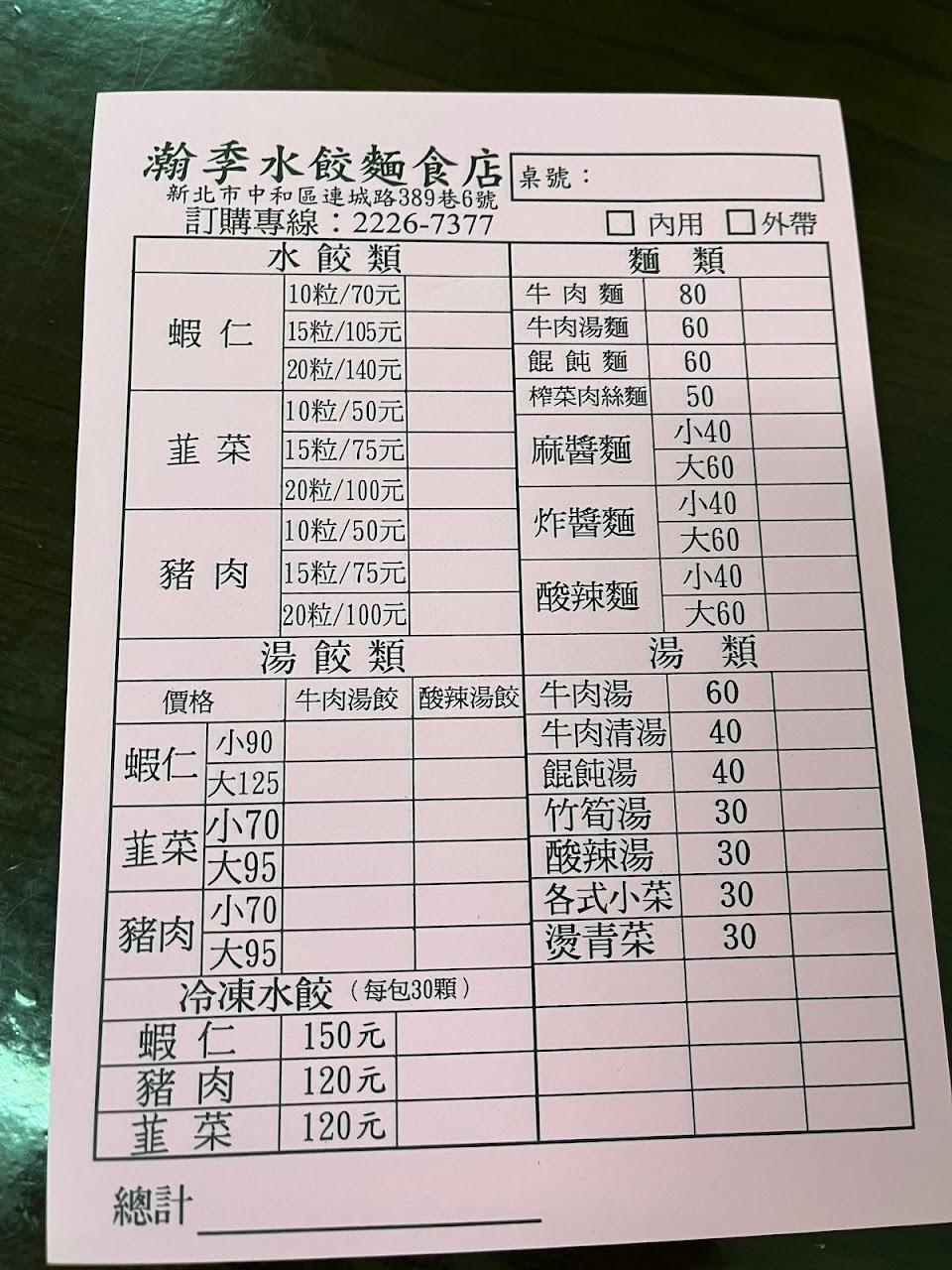 2024最新在地推薦餐廳的菜單_瀚季水餃麵食的菜單、圖片