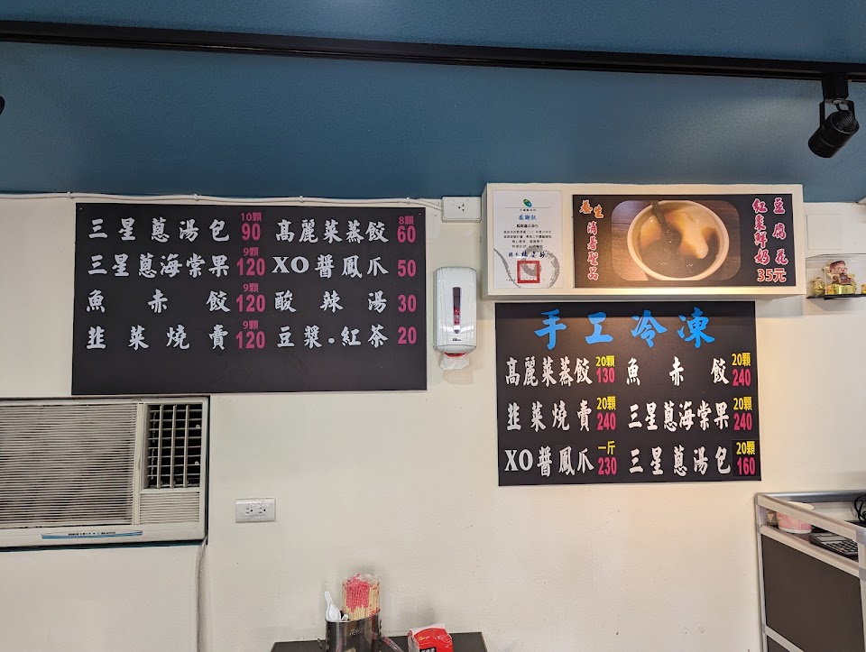 高麗菜蒸餃, 酸辣湯 30, 三星蔥湯包, 韭菜燒賣