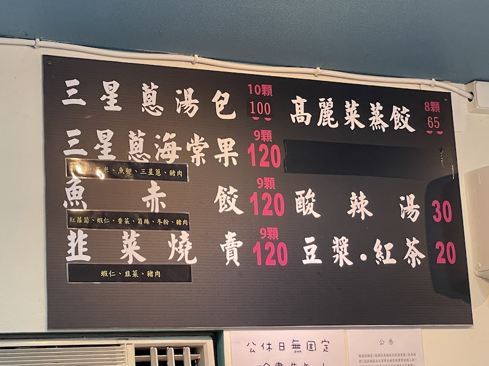 三星蔥湯包內餡的蔥給的很多、非常多、超級多;另外幾個蠻特別的選項,不是每天都有的樣子。