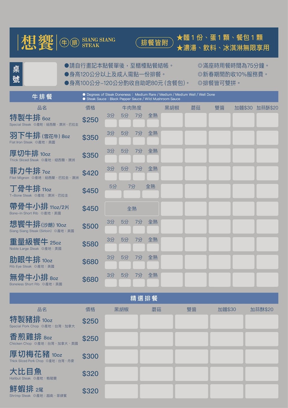 2024最新在地推薦餐廳的菜單_想饗牛排的菜單、圖片