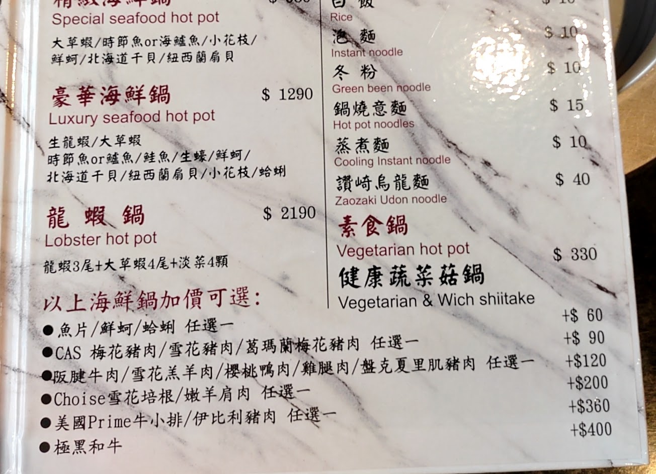 自身餐後的分享 好的: 1.停車場大 2.座位也算寬敞 3.免服務費 缺點 1.點的鮮蝦海鮮鍋(天使紅蝦不ok,未下鍋前有一隻外殻已損壞分裂,吃的時候也軟軟不新鮮,其他的蝦還好) 2.吃下來女生吃不多的,應該還可以,但男生覺得這價位,這份量是還有點吃不飽! 服務 內用 餐點類型 午餐 平均每人消費金額 $1,400-1,600 特殊餐點 回應: 1.我指吃不飽,是先生說吃不飽,他點的是牛肉套餐,而且我上述沒有說,吃不飽是指共鍋吧!但以先生點的套餐,我指的是我女生來吃是夠的!當然也是依個人食量! 2.蝦子是我們最後才煮的,因為不想肉都是蝦味,如果貴店有攝影機也可以看一下,我們因爲是最後吃蝦子,所以也最後才發現蝦子外殻都分裂的狀況,附上照片左邊的那隻還好,右邊的都分裂了(不知道是冷凍急著解凍嗎?我不清楚)但是是因為已吃到尾聲,所以沒直接反應,但這我要檢討,不管是否用餐過程,只要發現就應該馬上反應給店家,請店家處理!但我上述也提到,其他蝦子是都沒問題的! 3.因為是看評分過去貴店用餐,可能我期望值太高,很抱歉!我不應該期待值高,失落才沒怎麼大!抱歉